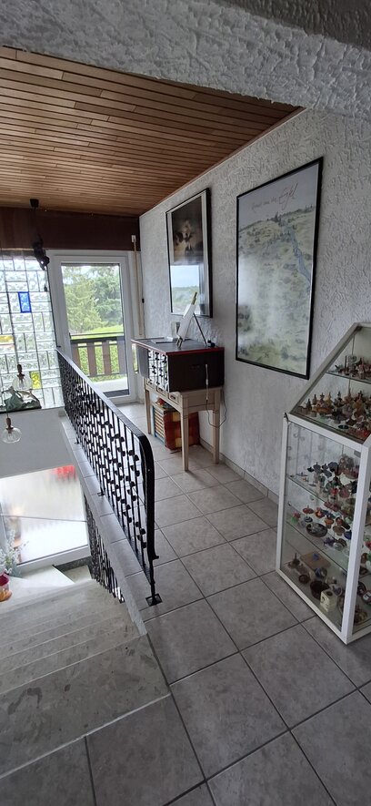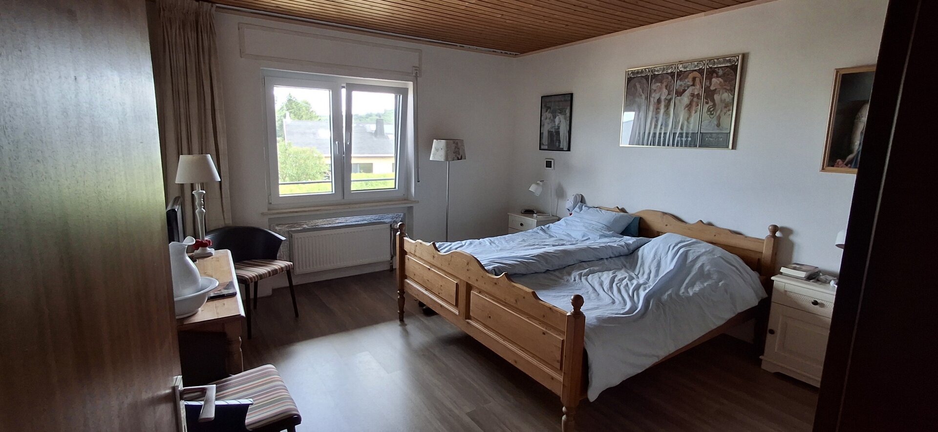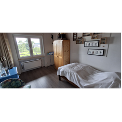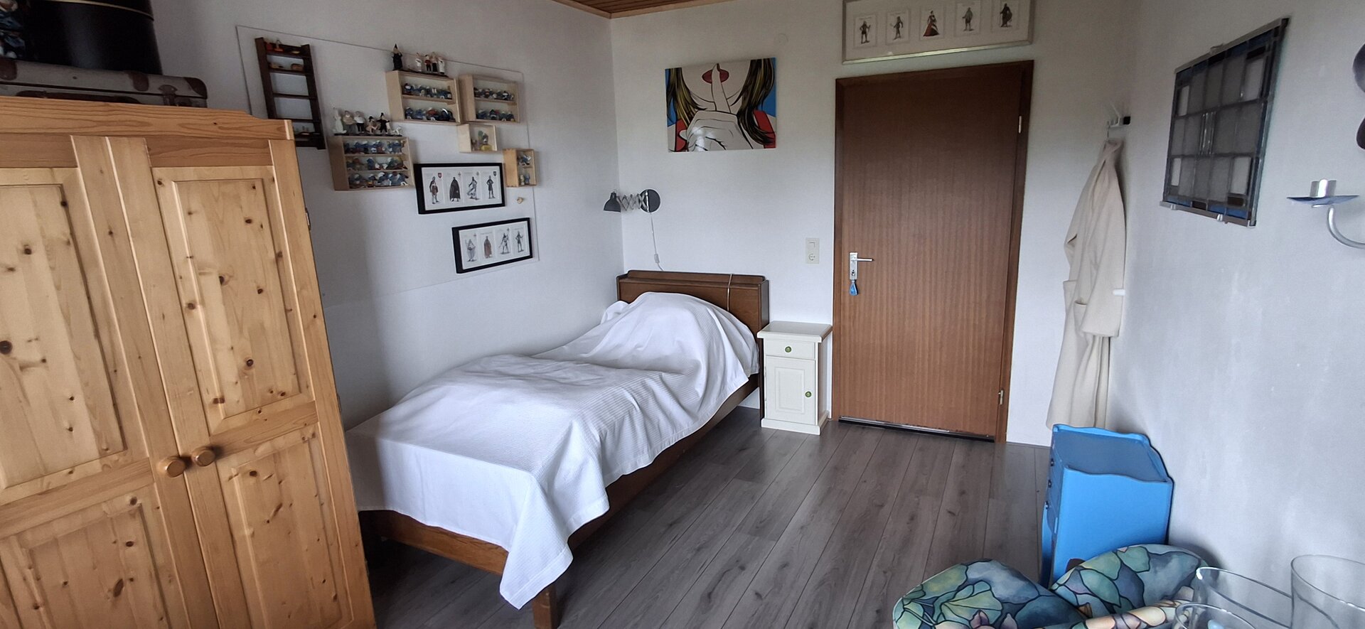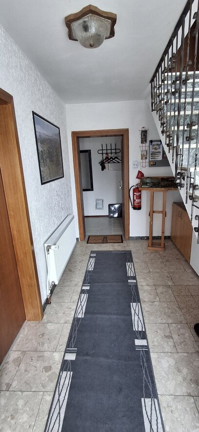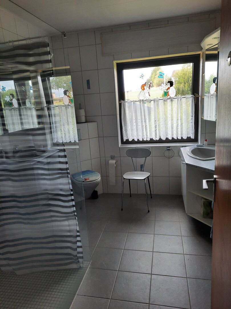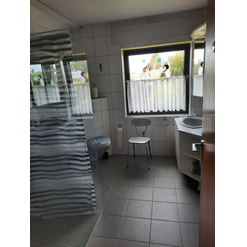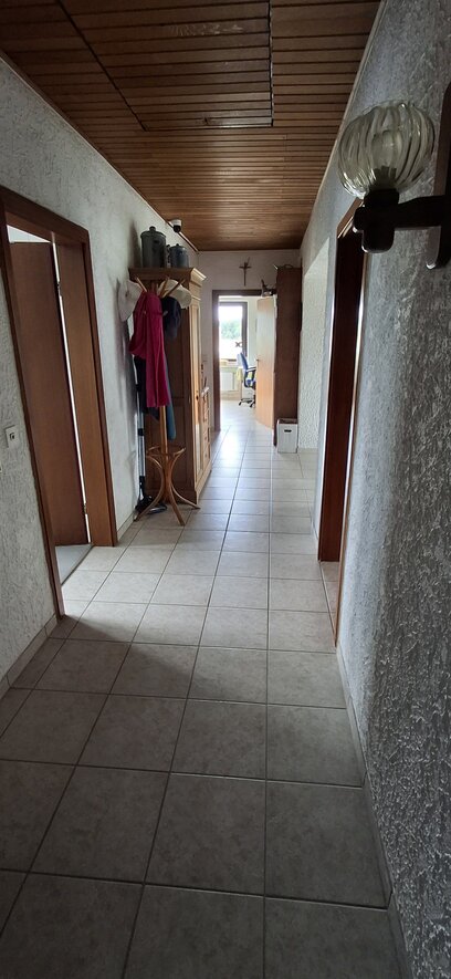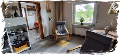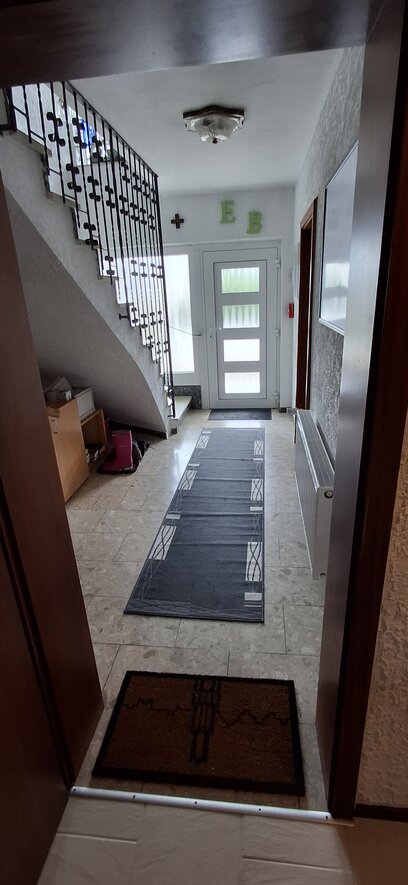 Deze woning bereik je via de hal beneden en heeft binnen een eigen voordeur. Veel huizen in Duitsland hebben vaak meerdere woningen in een huis en deze heten Einliegerwohnungen. Deze woning gebruiken we voor gasten en mogelijk ooit voor de verhuur. Lees meer over deze Einliegerwohnung >>
