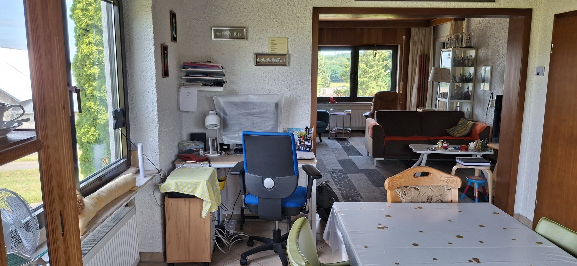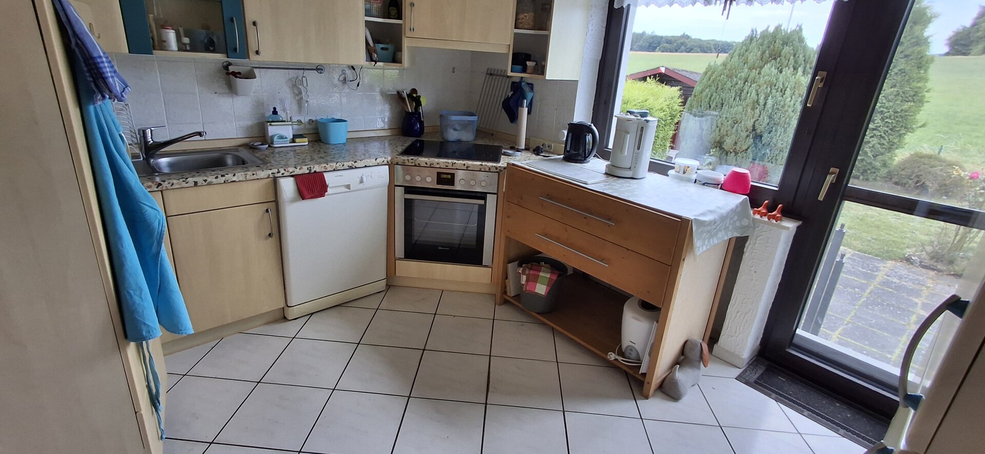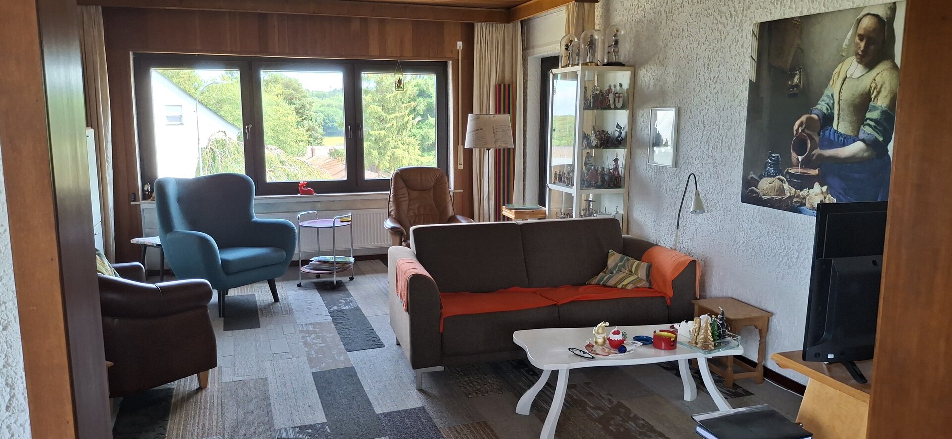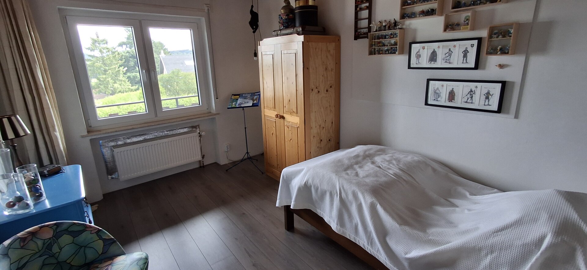Deze woning bereik je via de hal beneden en heeft binnen een eigen voordeur. Veel huizen in Duitsland hebben vaak meerdere woningen in een huis en deze heten Einliegerwohnungen. Deze woning gebruiken we voor gasten en mogelijk ooit voor de verhuur. Lees meer over deze Einliegerwohnung >>